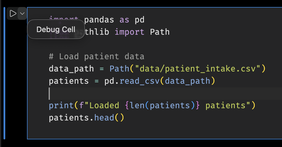 | Debug Console | Run ad-hoc checks (df.head()) |